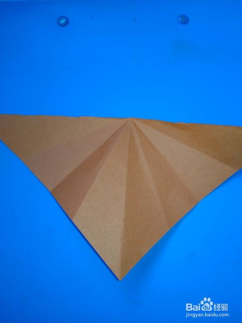 把上面的三角和下面的三角分别段折。就像折扇子一样。