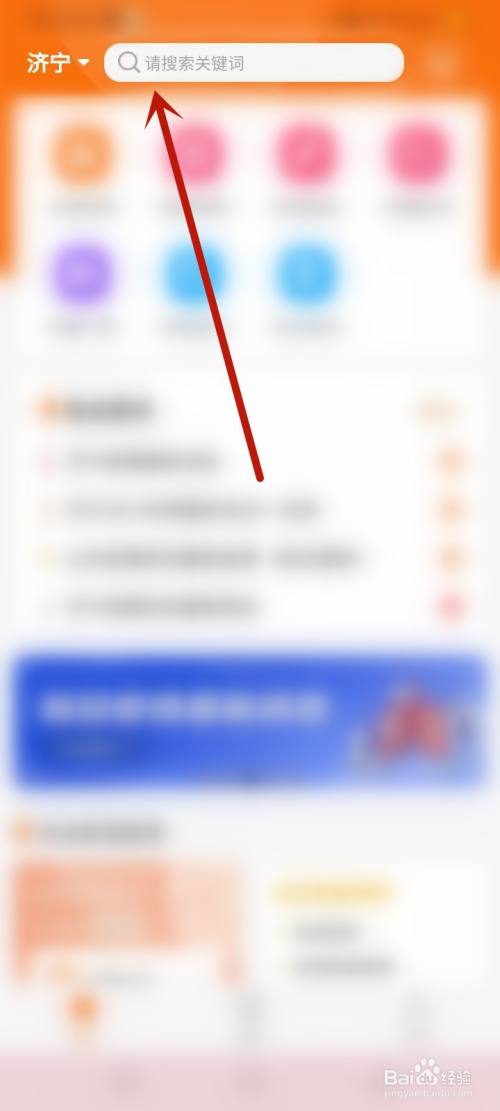 本地宝app页面,切换济宁城市,点击选择搜索关键词。