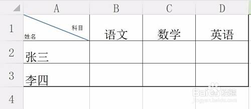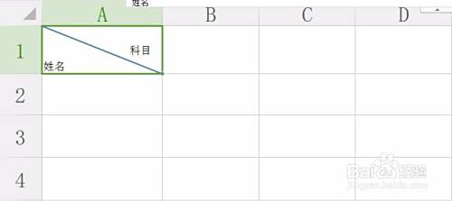 最后A1格单斜线输入完成,科目姓名分别在两个对角上;