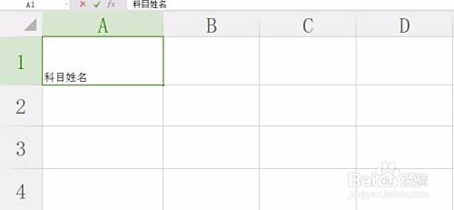 在A1格输入“科目姓名”并调节到合适的字体大小,这里我选择6号宋体;