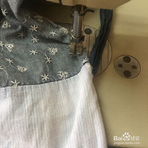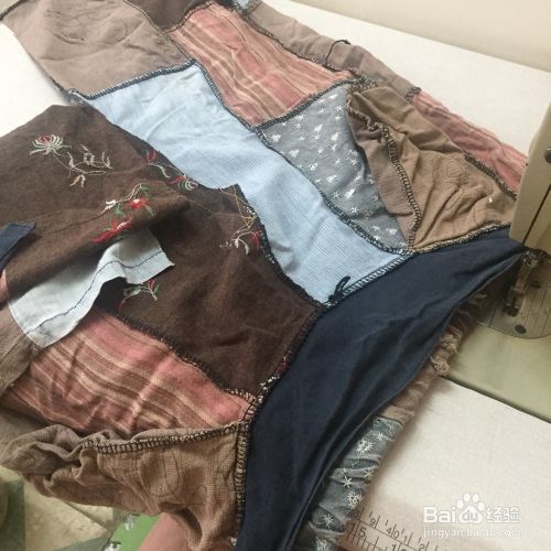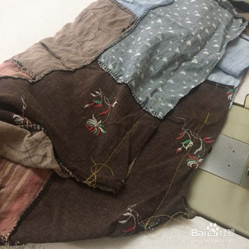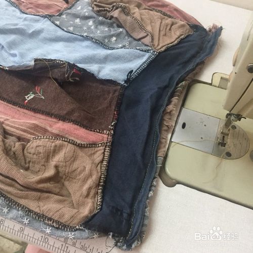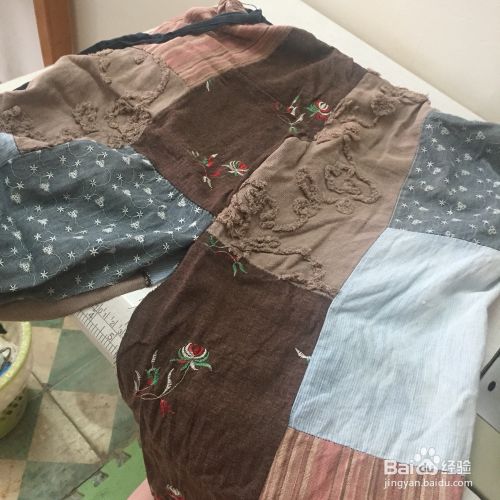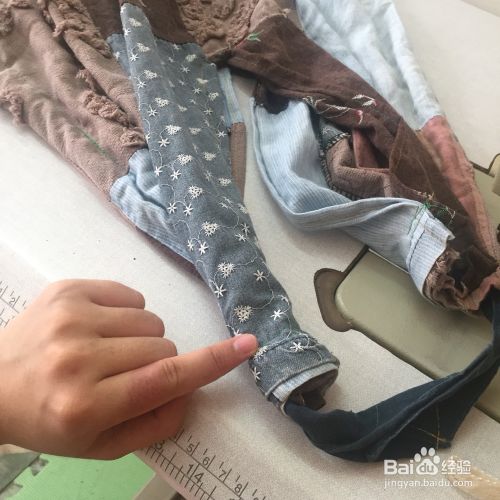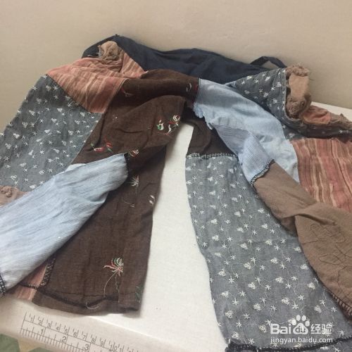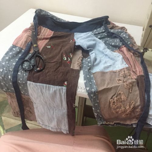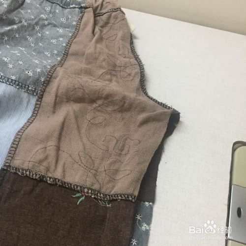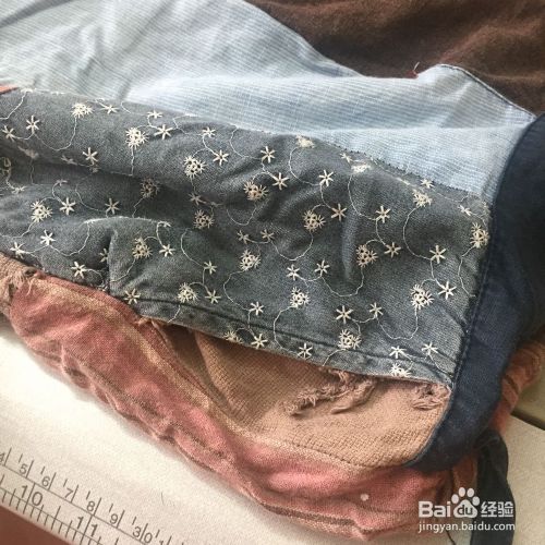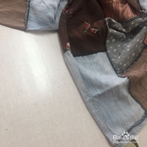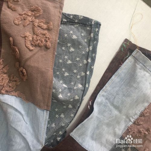 把裤子翻过来,把前面和后面分开,把新剪的裤裆叠起来缝
