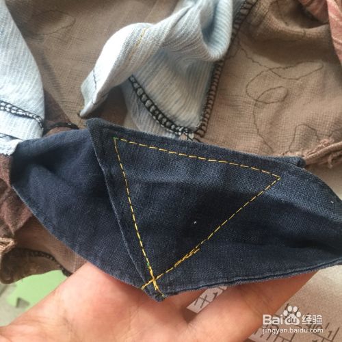 然后在裤袋底部两侧裤管外缘开一个孔,以便与裤带相吻合