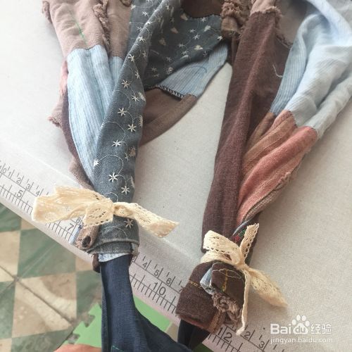 最后,将裤腿折成大褶,并与解开的裤带平行缝上