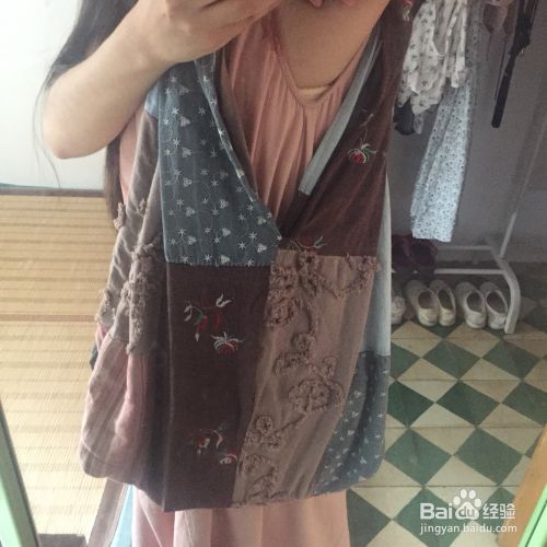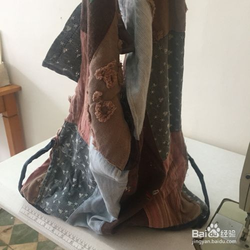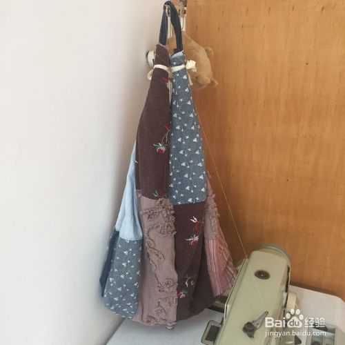 吊起后(附言:最后,你可以做一个底部有宽度的袋子,让它显得有体积;很简单,把两边的边折在两个角和底部的边上,然后在等腰三角形的底线上缝一条线,两边要对称,然后翻过来)