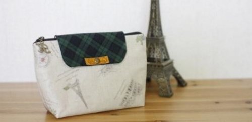 白色虚线处和包盖缝合在一起。漂亮的手拿包就制作完成了。