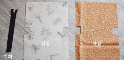 一片表布,一片里布和一根拉链。拉链长20厘米,包包表布是拉链+3厘米左右。