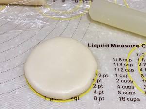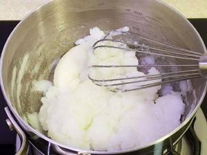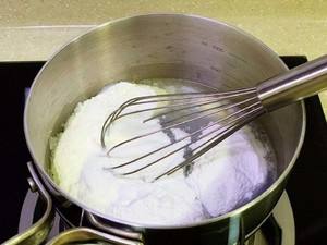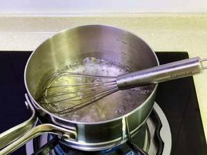 水210克,玉米油28克,白糖50克,盐,混合均匀,小火加热至沸腾,倒入冰皮月饼粉,继续小火加热,搅拌至固化关火