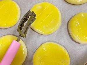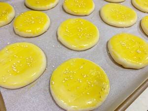 用刷子蘸满蛋液在表面刷两层蛋黄液,用利刀割三个口子,撒上白芝麻