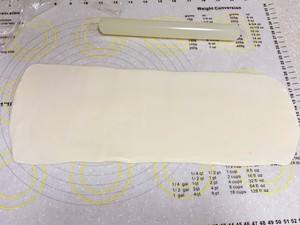 取一个面团擀开成长方形,两端分别向中间1/3处折叠