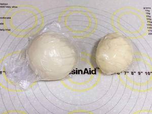 油皮面团和油酥面团分别分成两等份,滚圆盖保鲜膜松弛半小时