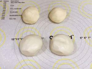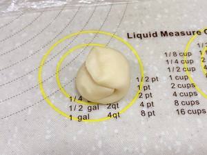 水油皮的材料混合揉成光滑的面团,尽量揉出筋膜,油酥材料混合成均匀面团。