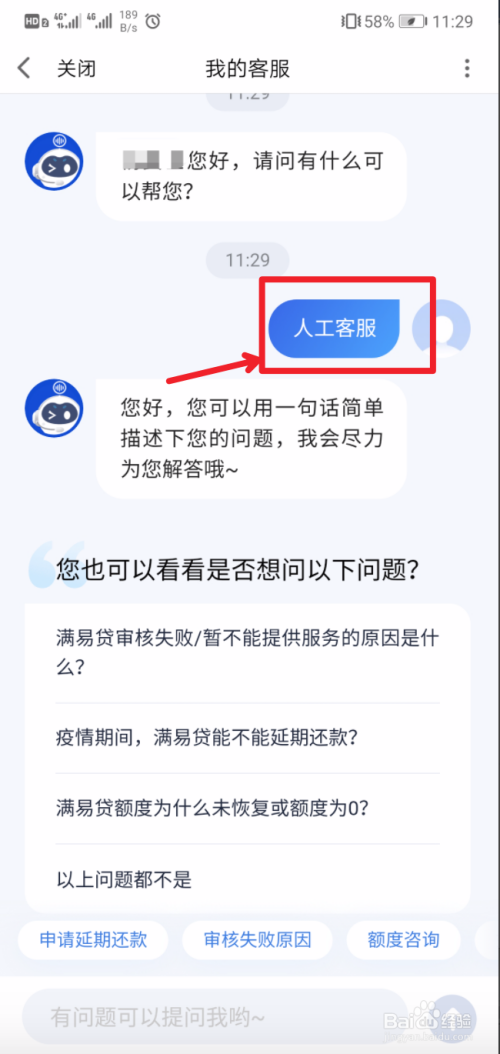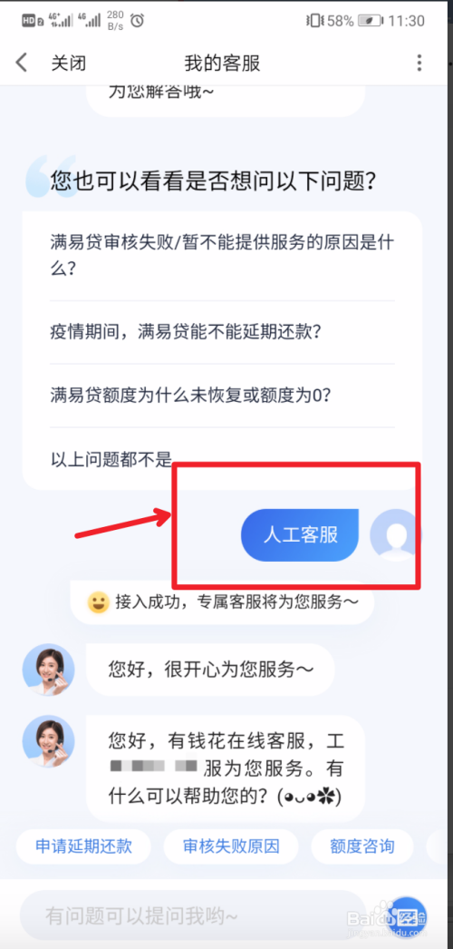 如果没有连接到在线客服,您需要再次输入一次【人工客服】,这样您就可以成功与人工在线客服取得联系了。