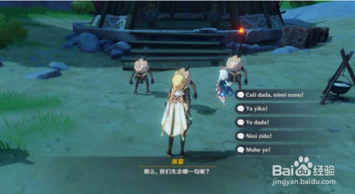 然后去和丘丘人聊天:Celi dada, mimi nunu;Ye dada;Muhe ye。