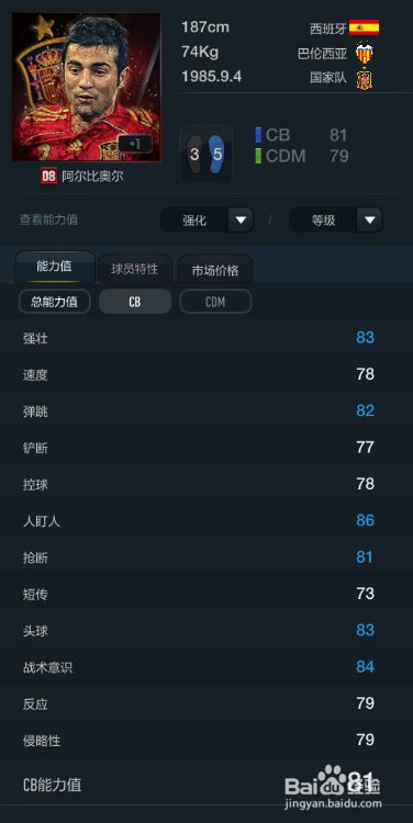 中后卫——阿尔比奥尔(08欧洲杯赛季):阿尔比奥尔在巴伦西亚是球队的主力中后卫,他在场上防守出色,在游戏中也是出色的中后卫,身体强壮,头球能力强,作为主力球员表现值得称赞。