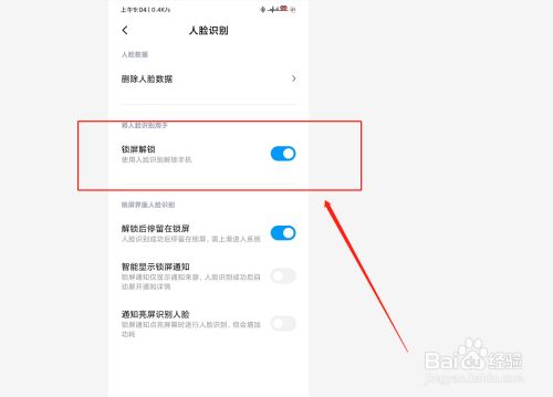 第三,在人脸解锁设置页面,点击【锁屏解锁】。