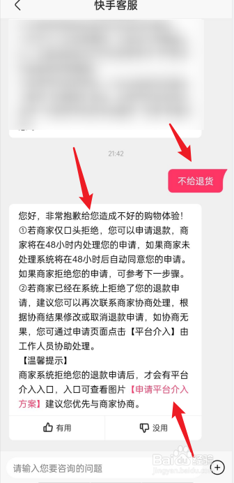 输入不给退货,即可联系官方客服。