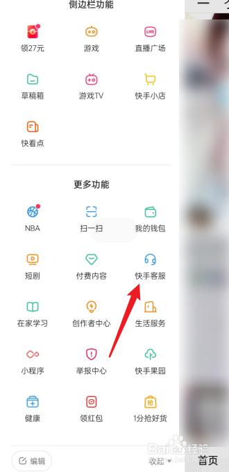 在更多里面,点击快手客服进去。