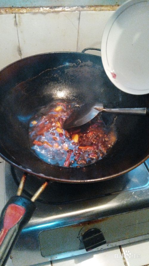 在锅中放入适量油,加入姜、蒜、花椒、桂皮、干辣椒炒出香味;