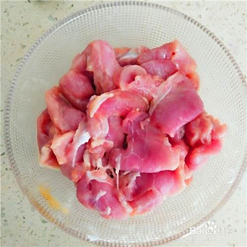 肉片放在碗里,加入适量的盐、蚝油、料酒和生粉,抓匀腌10分钟。