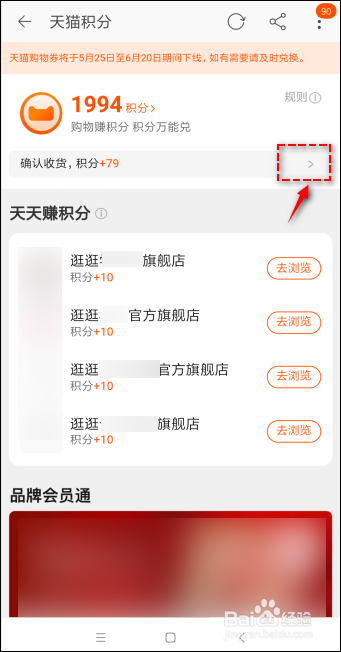 在天猫积分界面,点击确认收货右边的方向箭头;