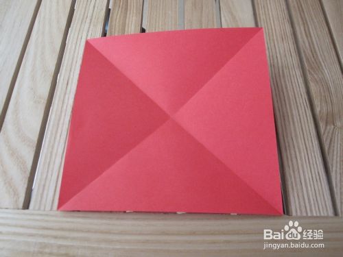 叶子好了,我们开始折花了,首先两边沿对角线对折方形纸