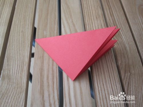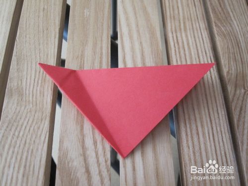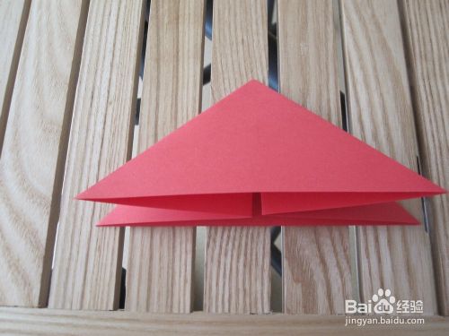 把另外一边封闭的三角往里折叠,形成一个小三角形