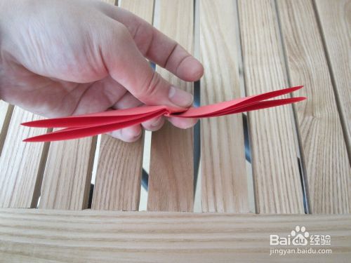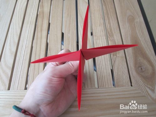 然后用手捏住第11步骤完成的小三角线,让四个角都散开,四个方向都有一个