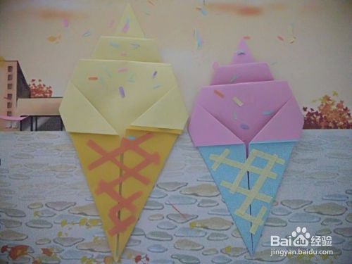 简单易懂的冰淇淋折纸方法之一。完成品如图。
