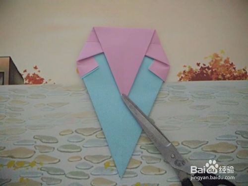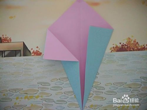 将左右两角依次往中间线折。(当蛋筒的面在下)
