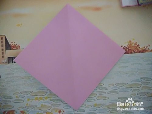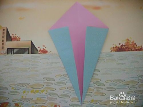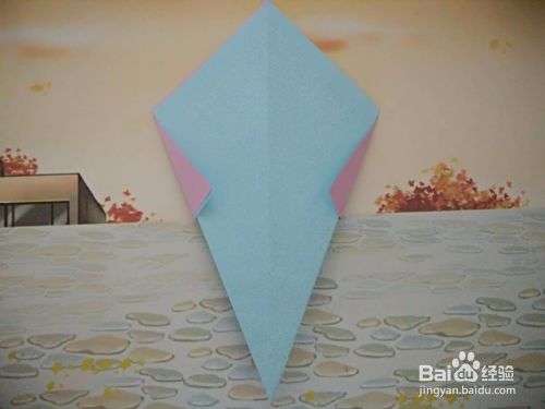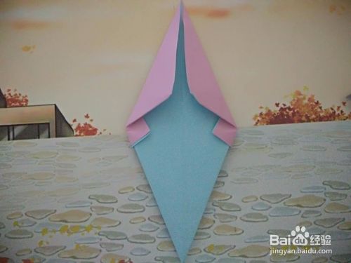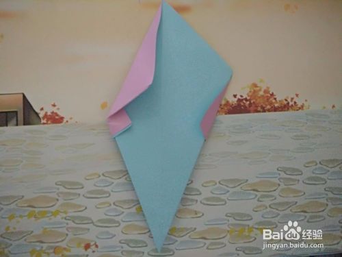 将顶角往下折,在往上折,如是两次。翻到正面。(折的时候把握好度)