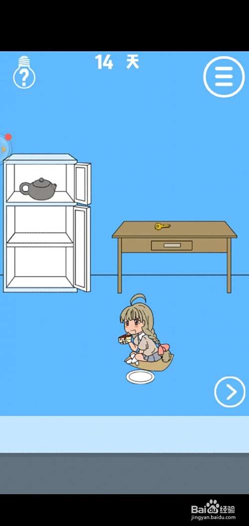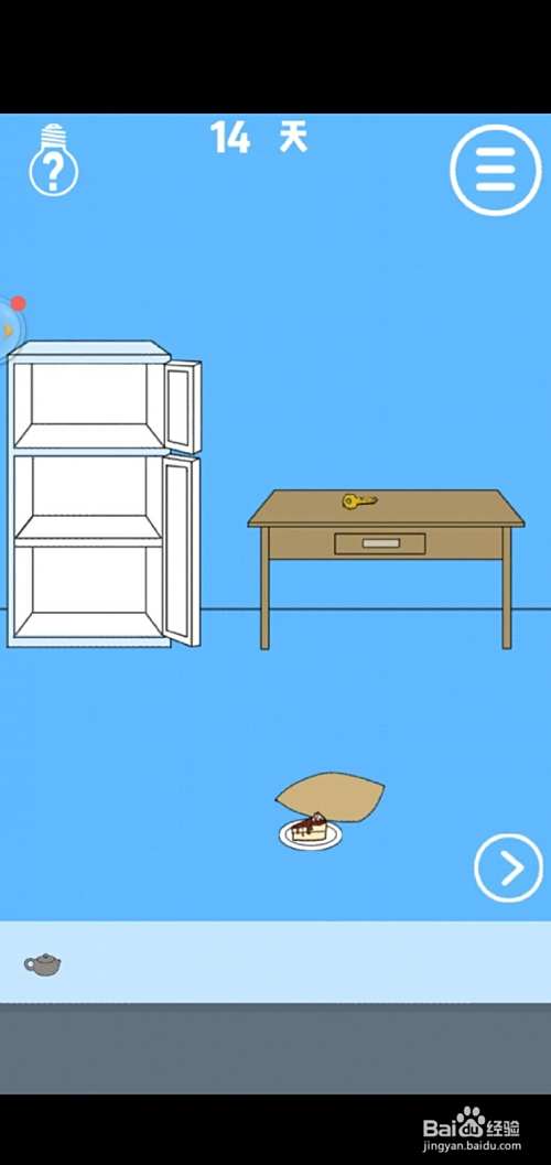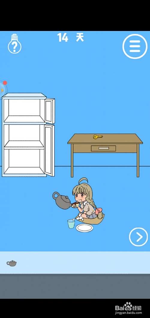 2、进入游戏界面,点击打开冰箱,获取里面的水壶。