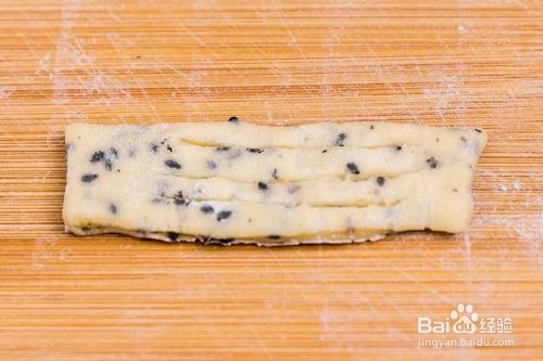 两片小面片叠在一起(喜欢薄一点的可以不重叠),中间竖切三刀,两头不要切断。