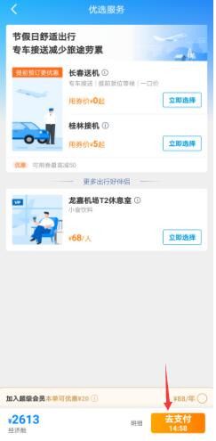 在机票预订支付页面,点击“去支付”完成机票的预订。
