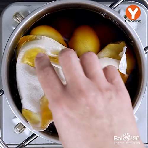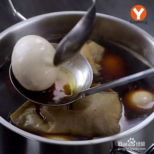 取锅倒入水,放入鸡蛋、所有调味料,煮约7分钟。