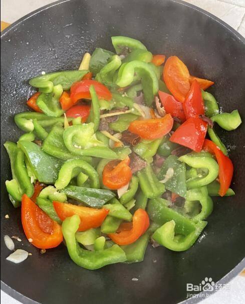 菜椒炒熟后,加入盐调味;