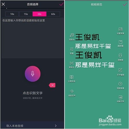 文字视频制作流程:音频素材你可以录制,也可以导入,视频怎能导入,素材准备好了,点击右上对勾,软件会智能识别音频,生成文字和特效。