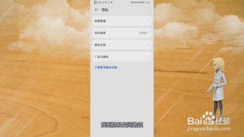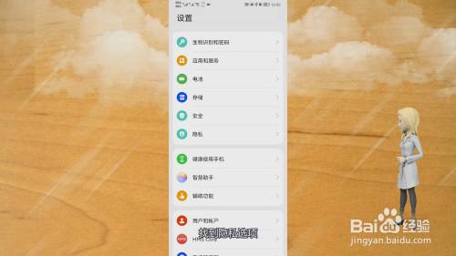 在华为手机的设置界面中,找到隐私选项,点击它进入新界面。