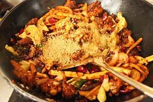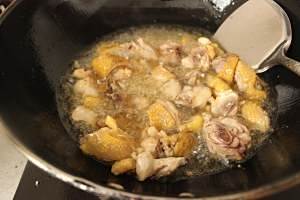 下炸好的鸡块翻炒。