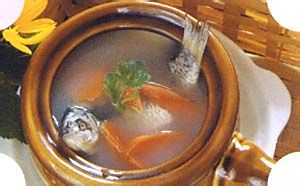 鲜鲫鱼(去鳞、鳃及内脏,下同),清炖食,或加黄豆芽或通草同煮汤食,治乳少。
