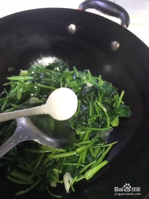 最后,可以放入适量鸡精提鲜,菠菜要现炒现吃,这样才美味。