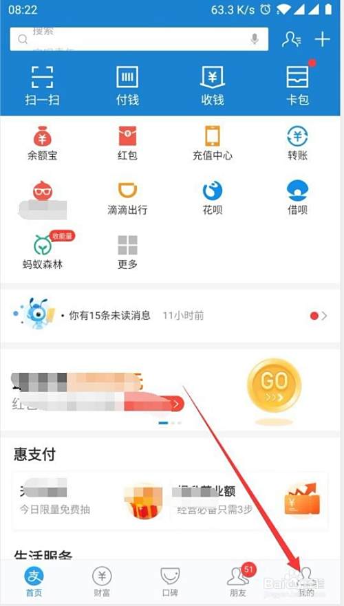 第1步进入到你的个人支付宝,然后在个人支付宝中点击支付宝的右下角的我的。