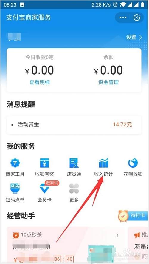 第3步进入到商家服务后,就可以看到如图所示的统计字样这里点击进入到收益统计。