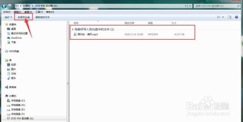 把要刻录的音频文件拖入光盘内,点击左上角的“刻录到光盘”