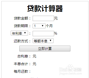 3、然后填写借款金额、利率、期限和还款方式等,填好后点击下面的“开始计算”。