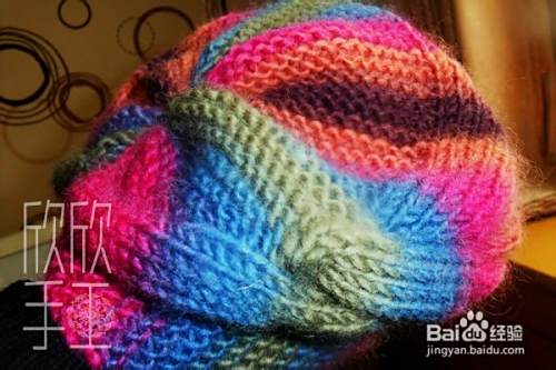 将两端用同色的线缝好并抽紧顶部,帽子完成。
