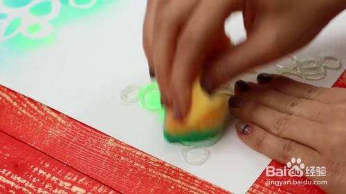 用海绵涂上颜料。