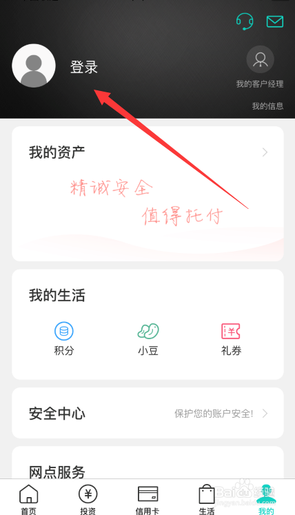 进入我的页面后,如下图红标位置所示,点击页面中的登录入口。
