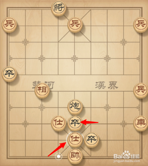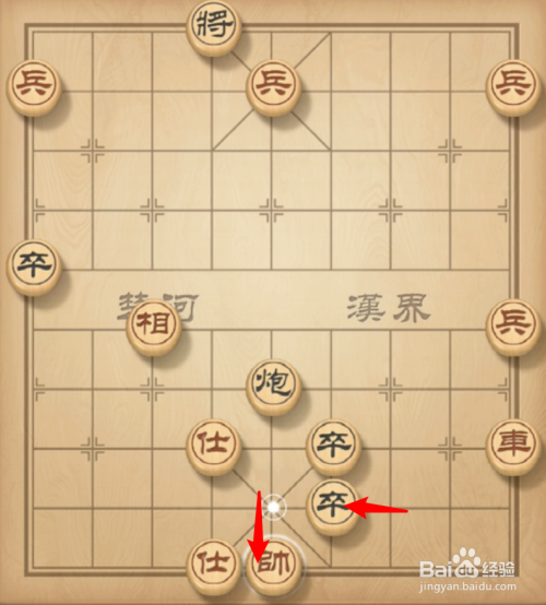 黑棋卒左走一步将军,红棋就帅下走一步。