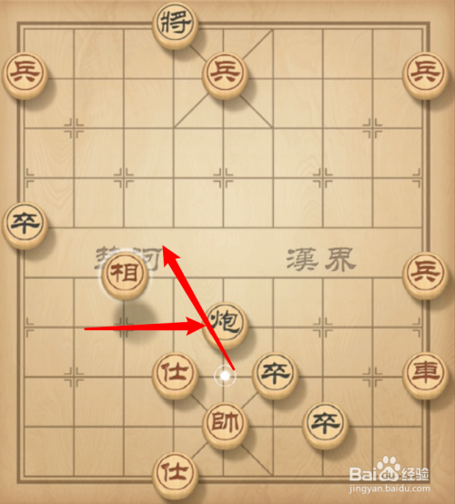 黑棋炮fhu走到象眼里,被红棋相吃掉了,黑棋没攻击力了,红棋把左边的兵移动过来就能赢了。