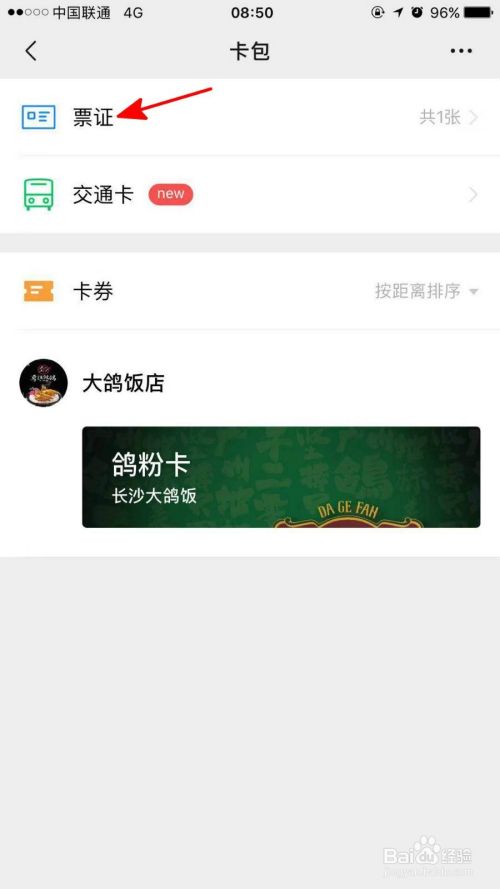 在卡包中点击票证。